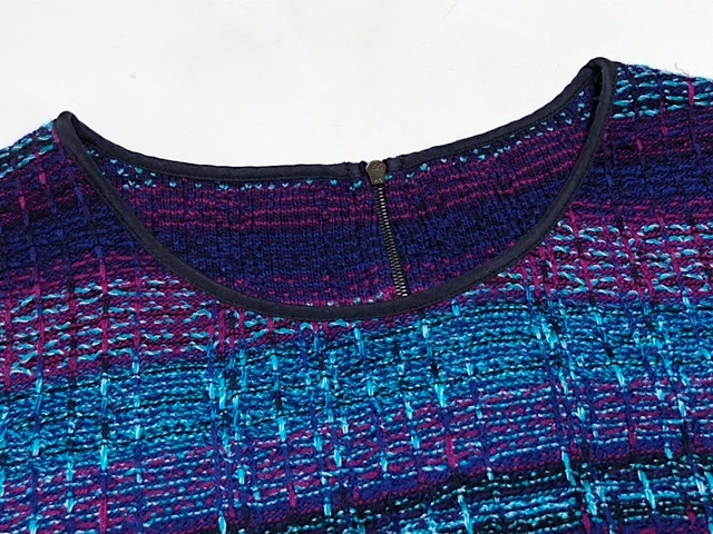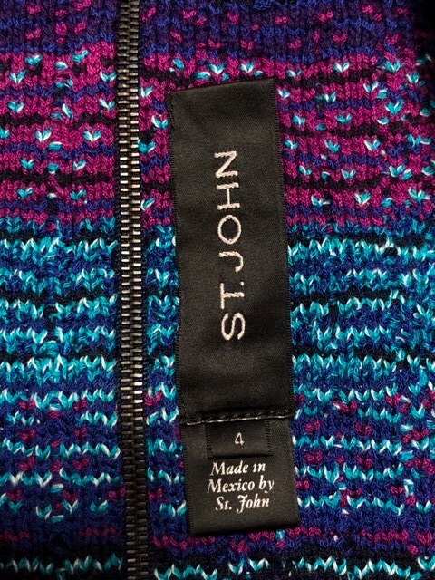 ☆二点落札で送料無料!S40 ST. JOHN セントジョン 鮮やか 半袖 ニット ワンピース S 4 マルチカラー ブルー系 ドレス ボーダー エレガント