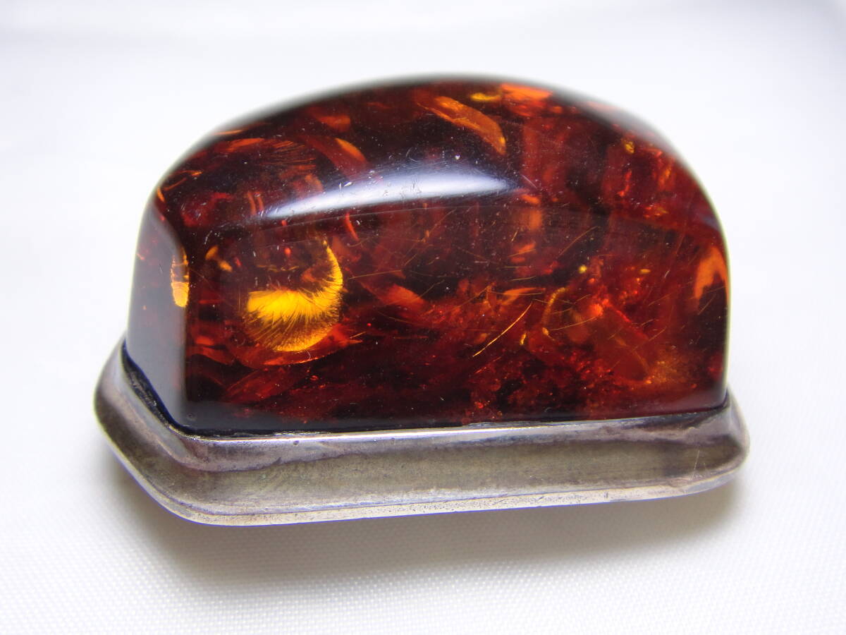 本琥珀 本コハク アンバー ブローチ 銀製 超大粒! 肉厚 時代物 アンティーク レトロ ヴィンテージ I435