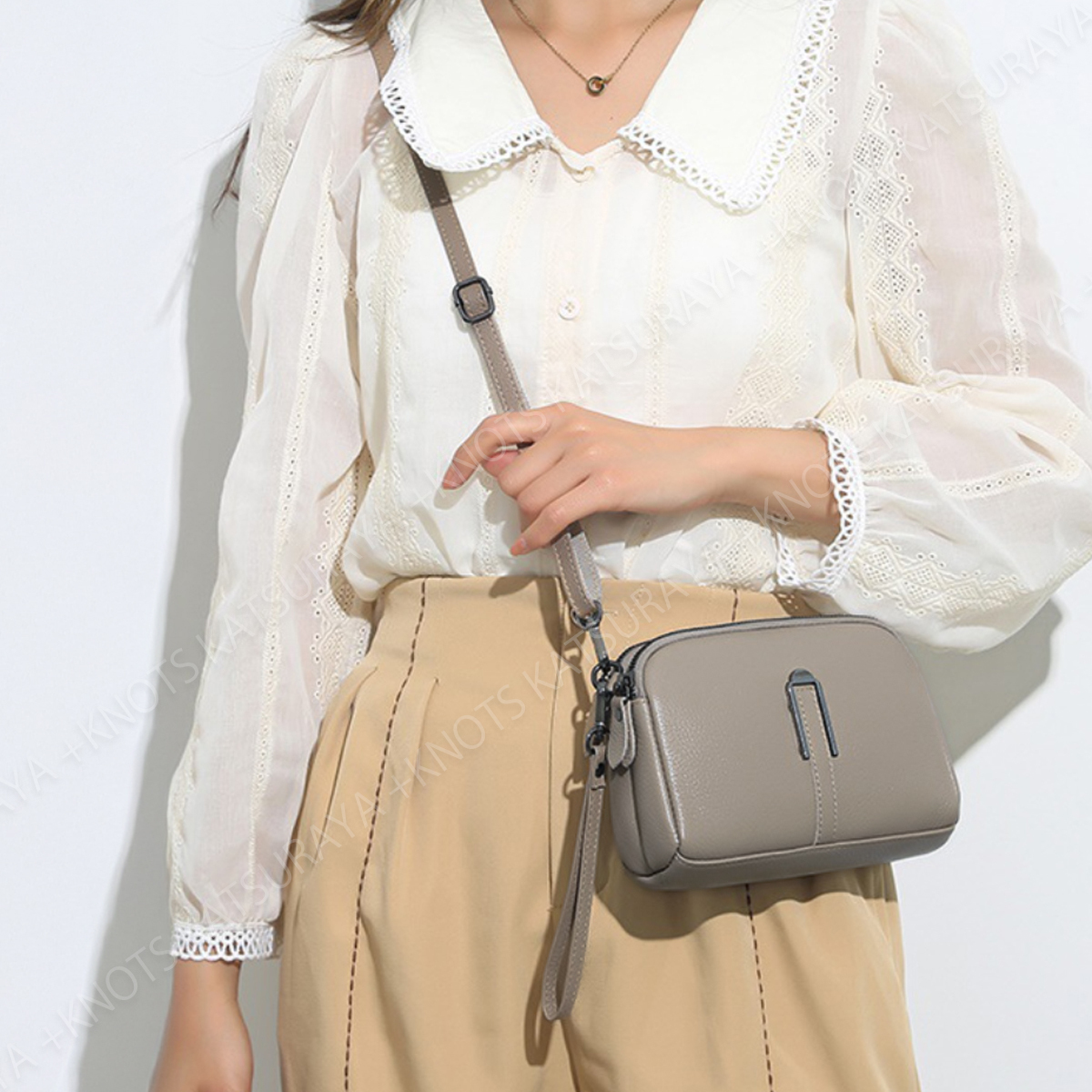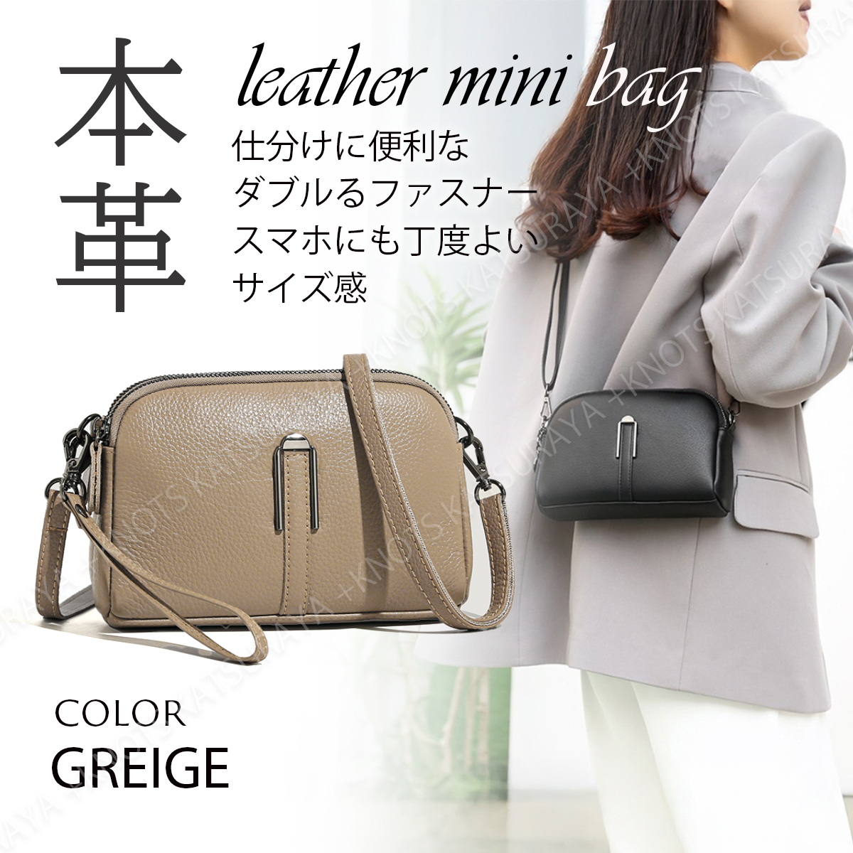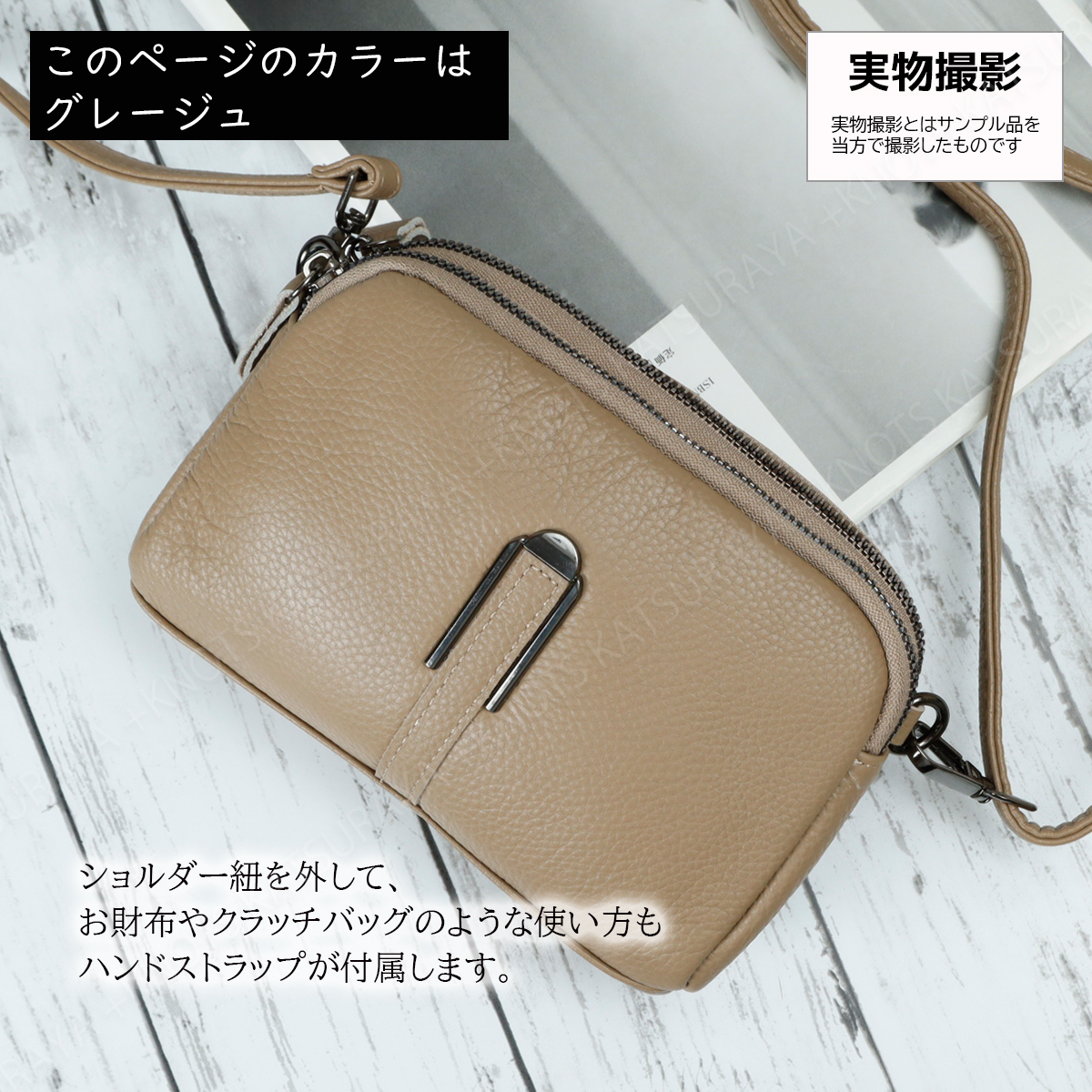 本革 ミニショルダーバッグ レデース★グレージュ★お財布ショルダー ポシェット スマホ ポーチ ミニバッグ 斜め掛け 牛革 レザーa447
