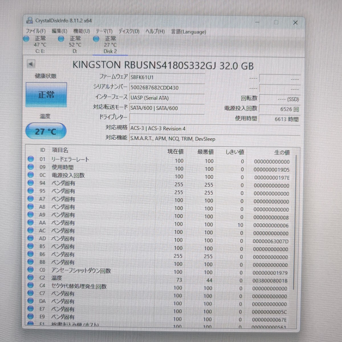 | 注意事項 | ■配送業者のご指定は契約上、承ることが出来ません。 ■土日はお休みを頂いており、週明けでの対応となります。 ■まとめて取引にご承諾頂けない場合、単品での発送となりますのでご注意ください。 ■保証類は設けておりません。返品不可のお品物です。 ■CrystalDiskInfoはあくまで目安であり、快適な動作を保証するソフトではございません。 ■このページに記載がない不良は保証外となります。 ■商品の使用方法などの電話・サポートは一切致しかねます。 ■梱包、清掃は簡易となります。 ■あくまでも中古品ですのでご了承いただけますようお願い申し上げます。 ■梱包済み商品となりますので、同梱を承ることができません。 以上、よくお読みになって質問・入札願います |