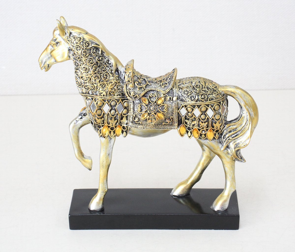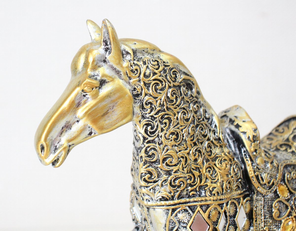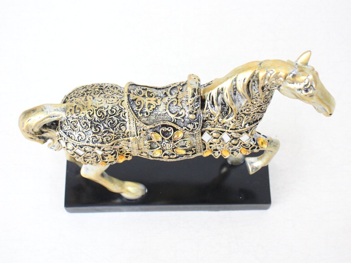 la32■金色の馬の置物◆全長26cm◆高さ26cm◆約1.1kg◆縁起物◆風水◆金運アップ◆インテリア