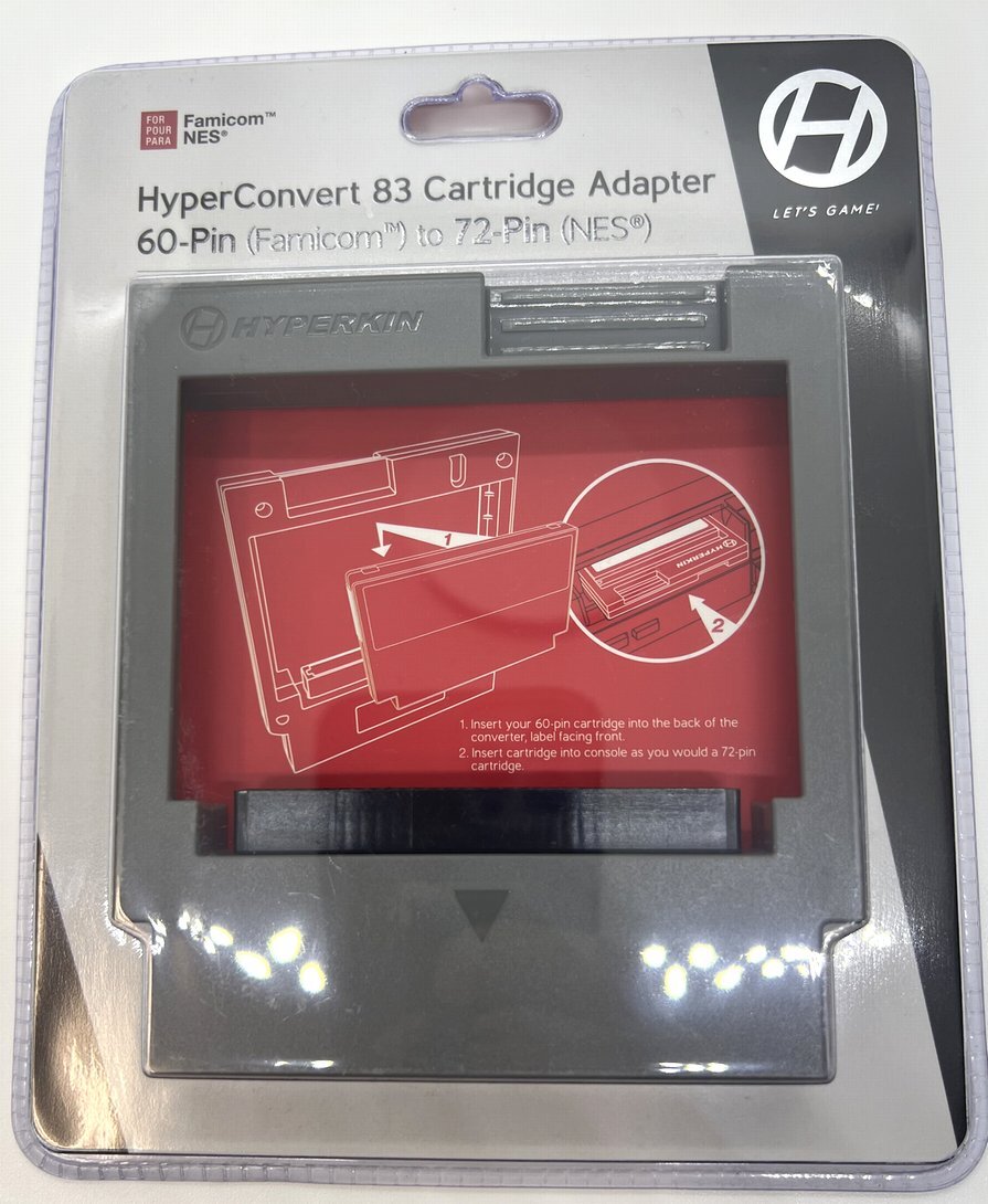 60ピン仕様の日本国内製ファミコンカートリッジを72ピン仕様の米国版NES本体で利用可能にする変換アダプタです。アダプターがNESカートリッジ型の形状となりますので従来の変換アダプタよりセットが容易です。 |