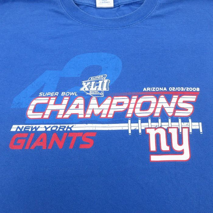 【商品名】 XL★古着 長袖 ビンテージ Tシャツ メンズ 00年代 00s NFL ニューヨークジャイアンツ コットン クルーネック 青 アメフト スーパーボウル