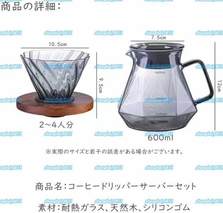 素材:耐熱ガラス、天然木、シリコンゴム サーバー容量:400ml 600ml