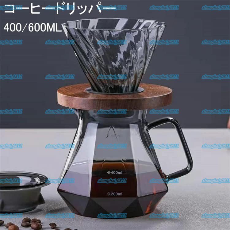 コーヒードリッパー ドリッパー コーヒーサーバーセット ハンドドリップ 耐熱ガラス おしゃれ ダイヤモンド 2-4人分(400ML)