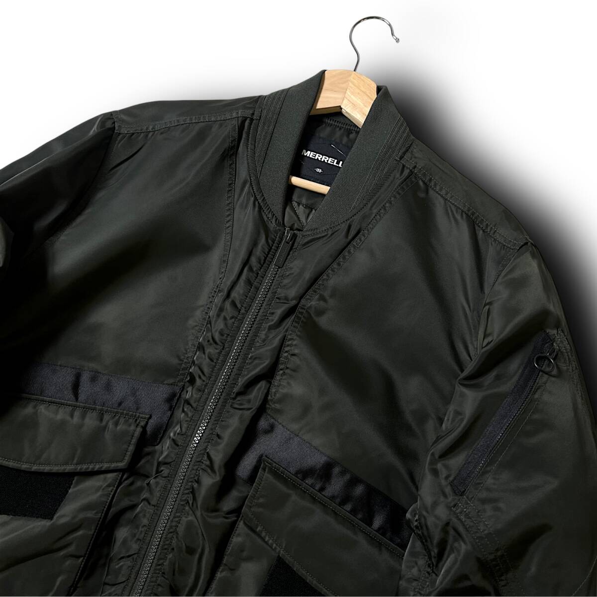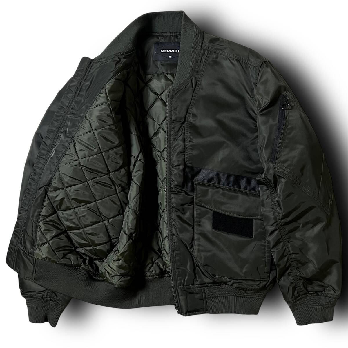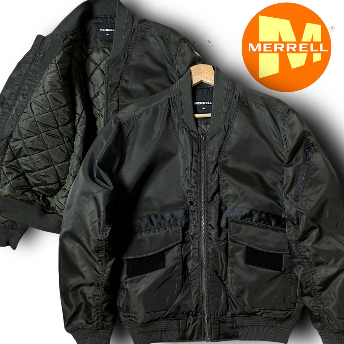 タイトル 新品 MERRELL メレル 切開ポイントパディングブルージョンジャンパー 撥水 防風 防寒 保温 耐摩耗性 ナイロン 中綿キルト 裏地キルティング フルジップ シングルジップ ボンバージャケット 中綿ジャケット パデッドジャケット エコダウンジャケット ミリタリーブルゾン MA-1 L メンズ アウトドア スポーツ レジャー キャンプ 旅行 カジュアル 普段使い タウンユース 秋冬 AW FW DARK KHAKI オリーブ系