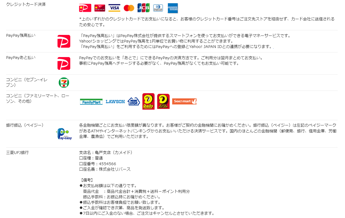 | ●代金引換 ※送料とは別に代引手数料が掛かります。 ※宅配便配送でのみご利用いただけます。 |