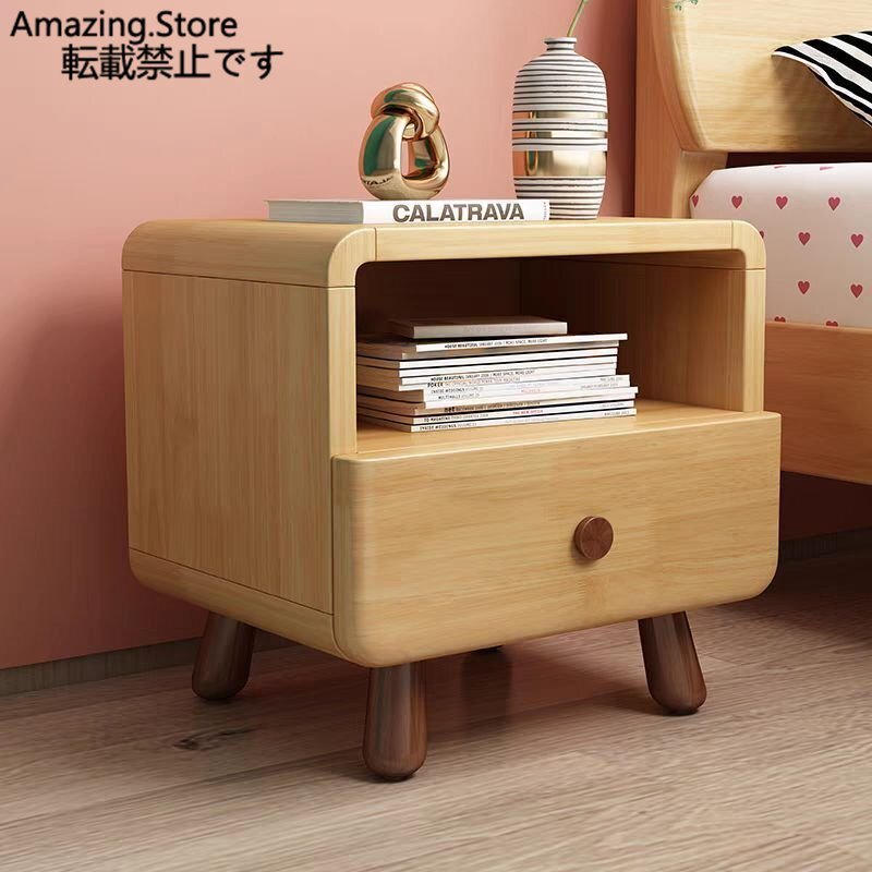 ナイトテーブル ベッドサイドテーブル 耐久性 引き出し2つ付 オーク 天然木 木製 無垢材 ナチュラル素材 組み立てが簡単