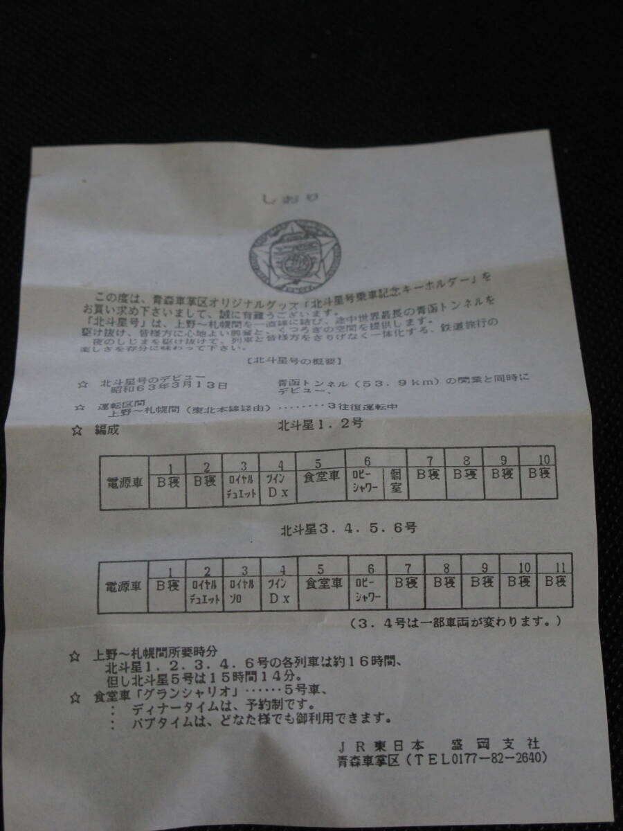 ●1990年 寝台特急北斗星 乗車記念 JR青森車掌区 キーホルダーの出品です。