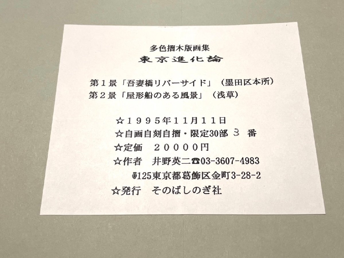 こちら■美品 井野英二 東京進化論 版画 第1集 第1景 吾妻橋リバーサイド 第2景 屋形船のある風景 限定 3/30部 平成7年 サイン入 ★になります。