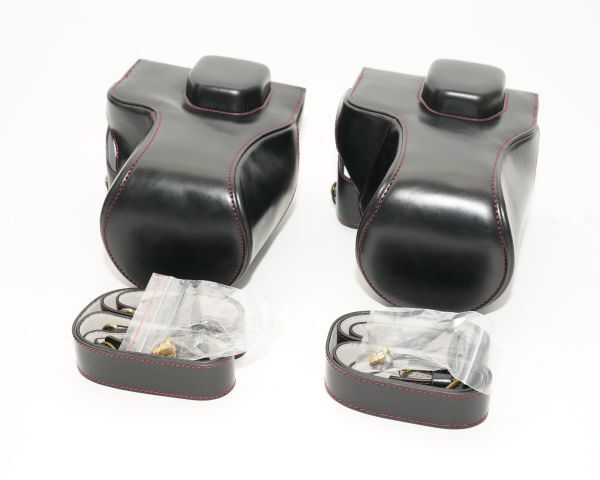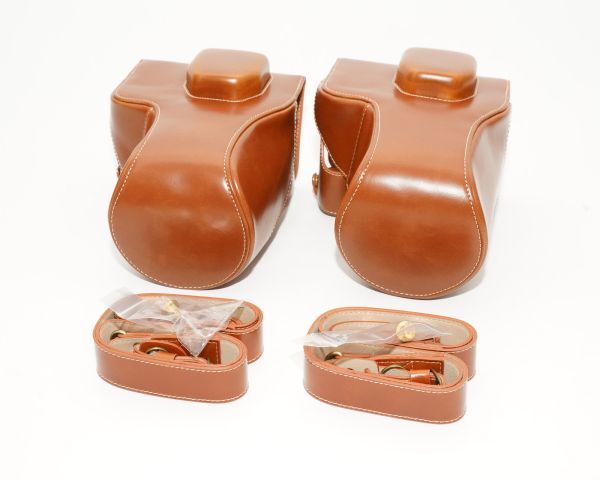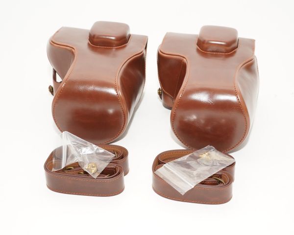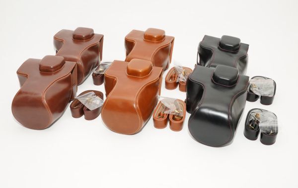 ブラック2個、ブラウン2個、ダークブラウン2個、合計6個セットです。止めネジも各1個づつ、合計6個付属します。ストラップも各1個づつ、合計6個付属しますが調整用の金具部分が硬いため弊社で調整した際に少し傷などがついてしまってるものもありますのでご了承ください。1個のダークブランのケース下部のねじ止部分横に少し目立つ傷がありますがカメラ取付には問題ありません。