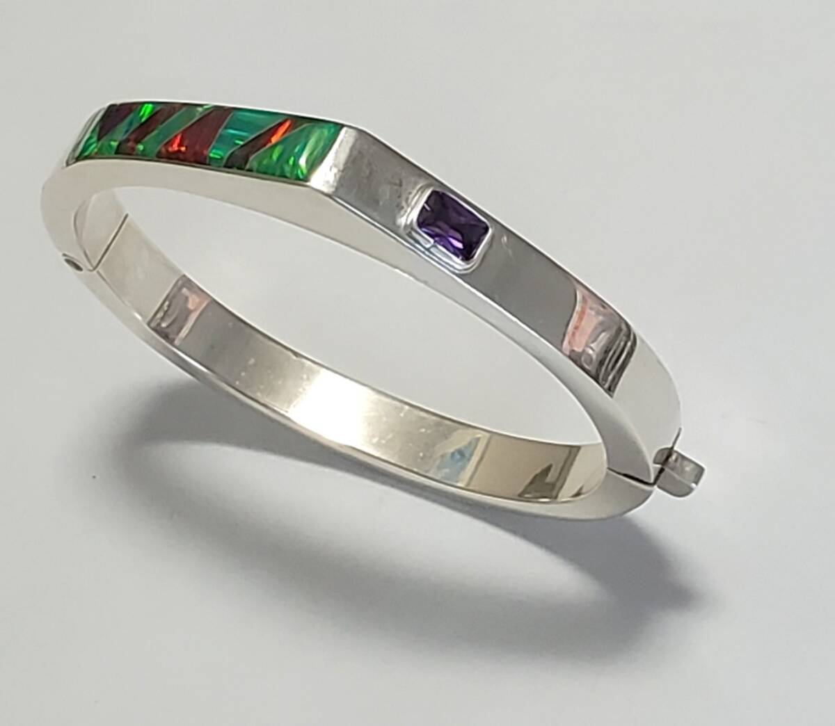SILVER 950 バングル  シルバー950刻印   天然アメジスト カラーストーン ブレスレット  アクセサリー レディース 32,7g