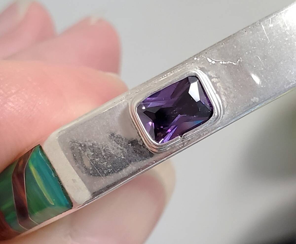 SILVER 950 バングル シルバー950刻印 天然アメジスト カラーストーン ブレスレット  アクセサリー レディース 32,7g きれいめ