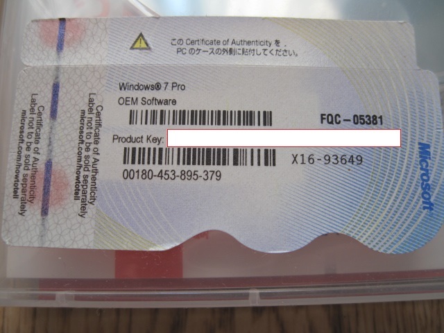Windows7 Professional 64bit 正規品です。