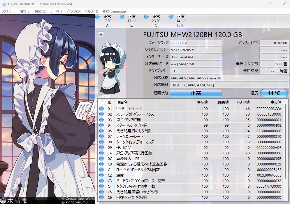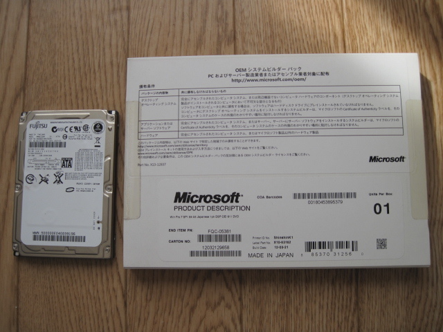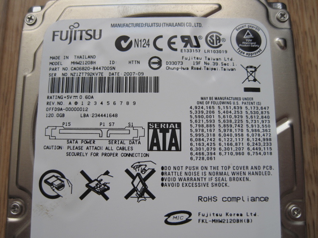HDDは富士通の2.5インチ120GBです。