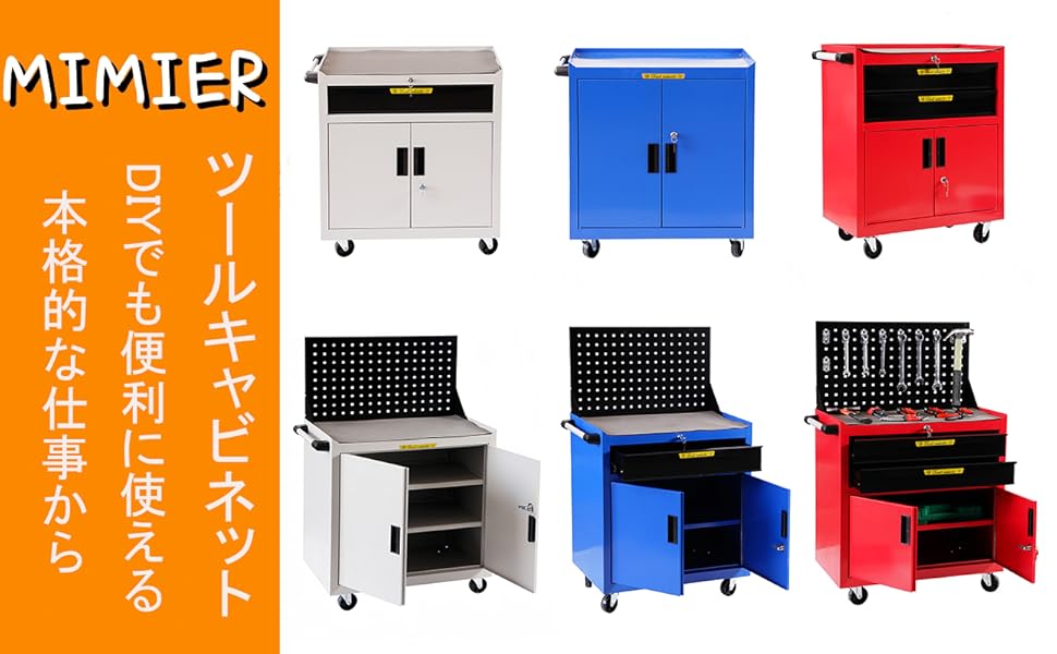 作業台一番上の天板部分は簡単な作業台としても使えます。 | マット付傷防止用のゴムマットが付いております。 | 引き出し引き出しはベアリングレールを使用し、開け閉めがスムーズです。 |