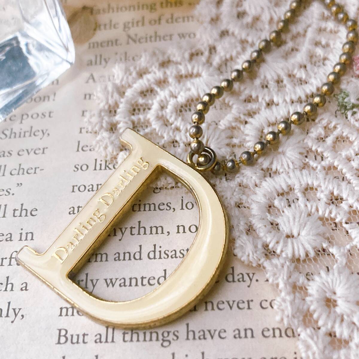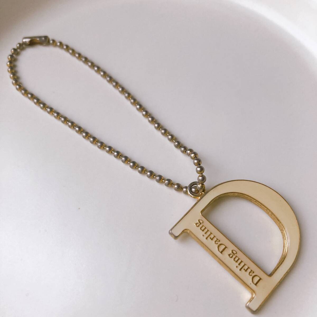 キーホルダー バッグチャーム D ボールチェーン エナメル darling darling  ゴールド☆Vintage jewelry accessories R0334