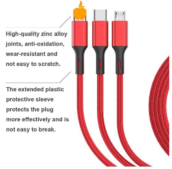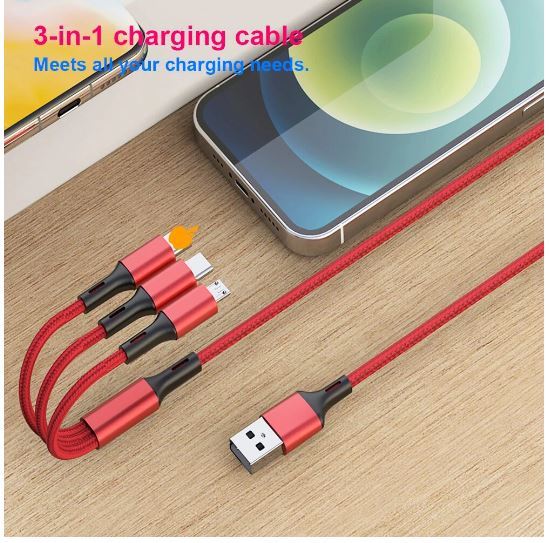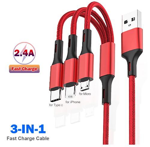 送料無料 未使用品 3in1 充電ケーブル 急速充電 1.2m マルチ充電ケーブル iPhone Micro USB USB Type-Cに対応  USB ケーブル f5