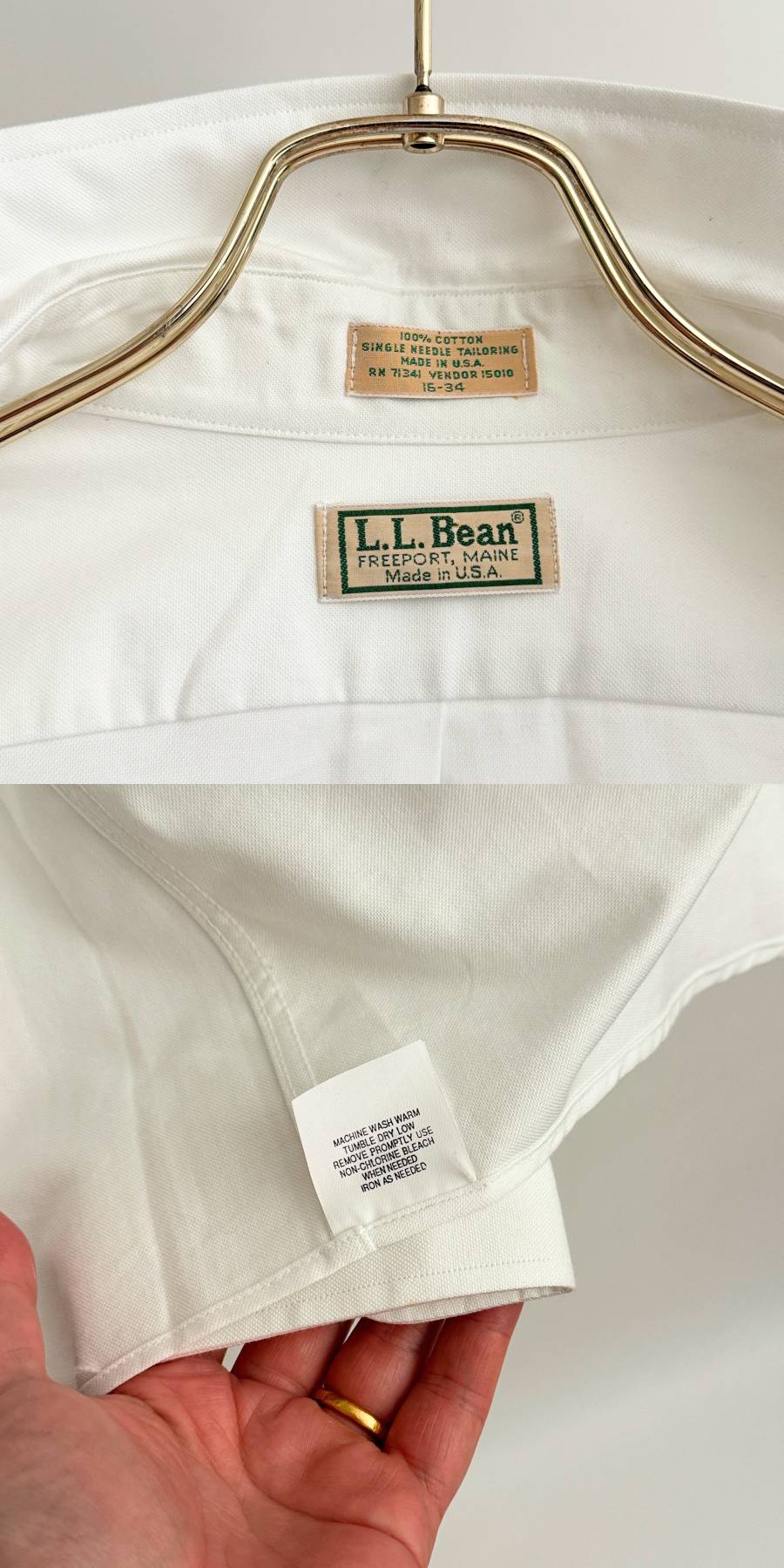 希少《 Dead Stock / Made in USA / 16-34 》80s デッド【 LLBEAN アメリカ製 ビンテージ ホワイト 白 オックスフォード BDシャツ 】