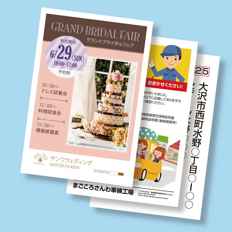 ●DMやおしらせ、挨拶状などにも最適で、宛名面には7桁の郵便番号枠の印刷があります。