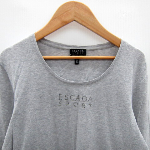 エスカーダ ESCADA カットソー 長袖 ラウンドネック 無地 ラインストーン M グレー /SY33 レディース
