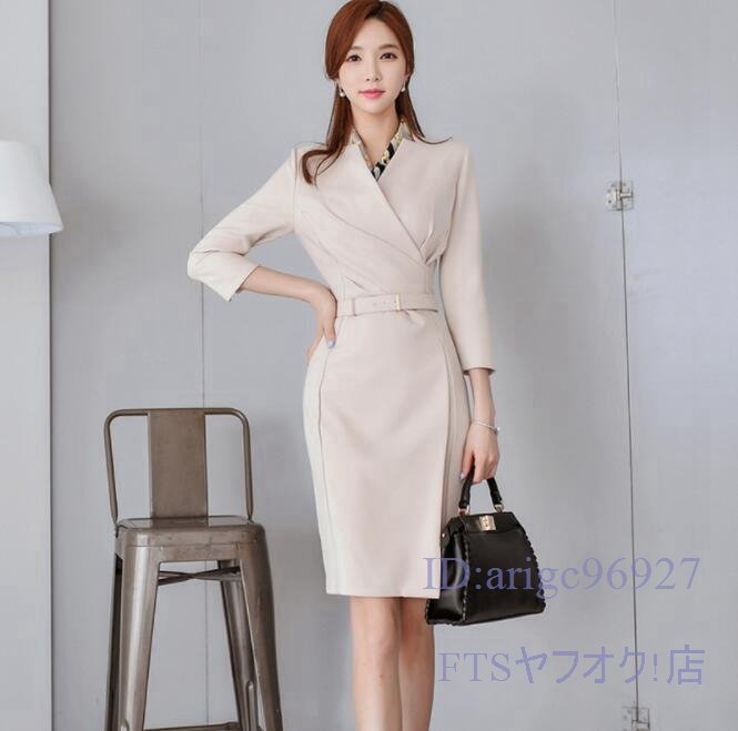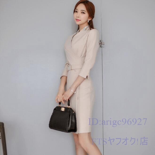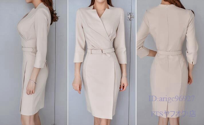 V595☆新品夏物 レディースエレガントワンピースアイボリーホワイトカシュクールワンピースS