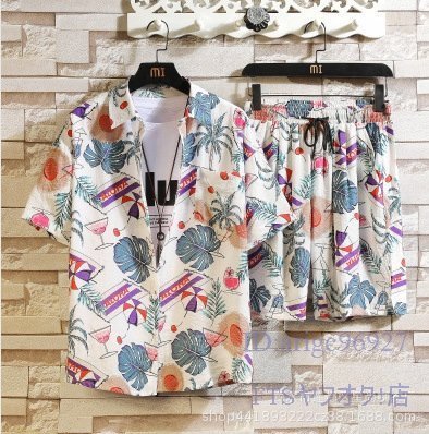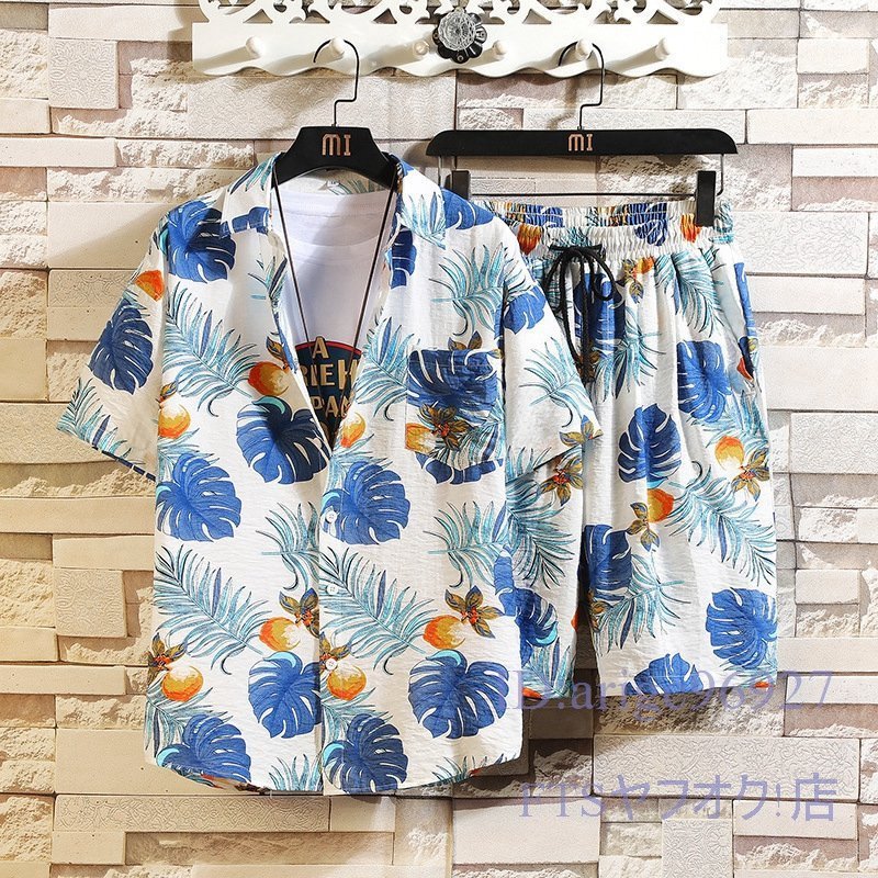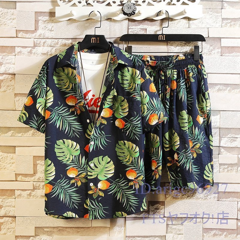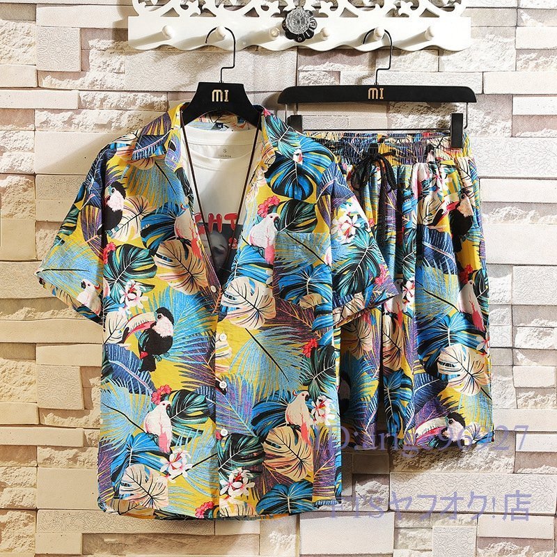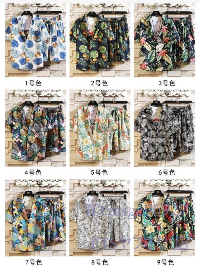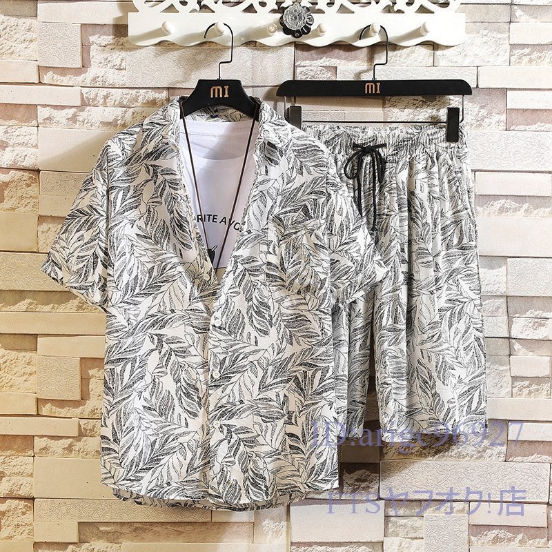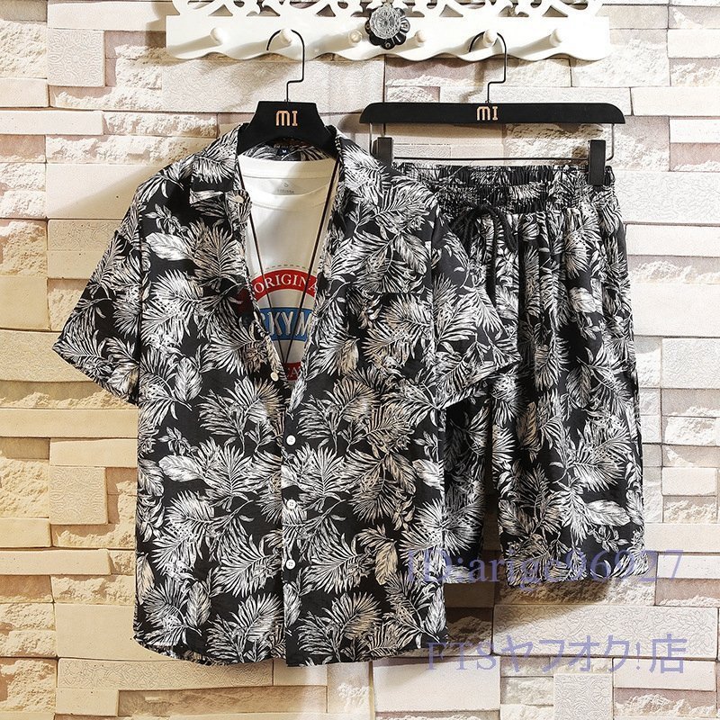 A2703☆新品大きいサイズメンズセットアップ レーヨン上下シャツ アロハシャツ ショートパンツ トレーナー2点セット ジャージ