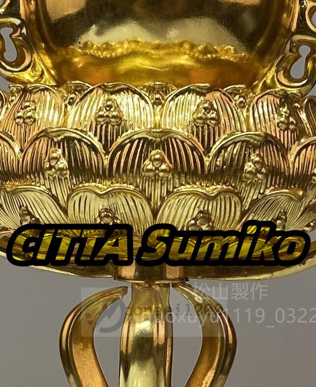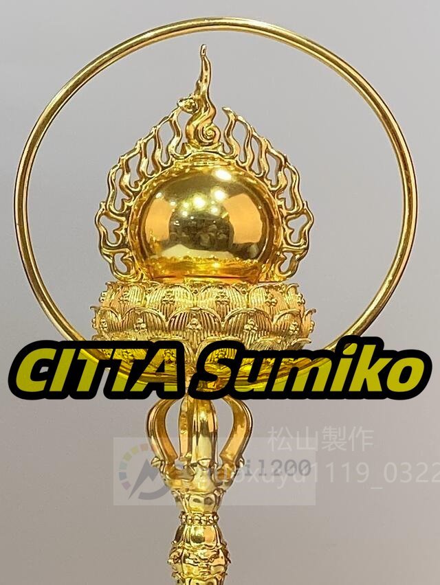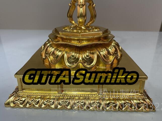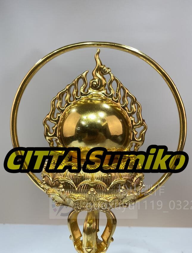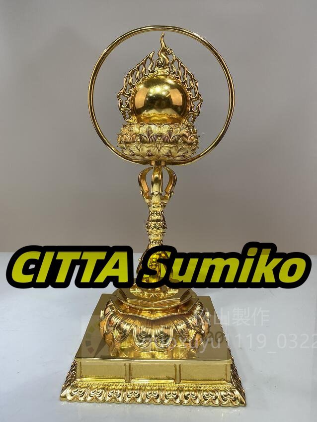「密教法具 寺院用仏具」仏教美術 密観宝珠形舎利塔 火焔宝珠舎利塔 真鍮製 金箔貼り 希少 手作り 高さ43cm