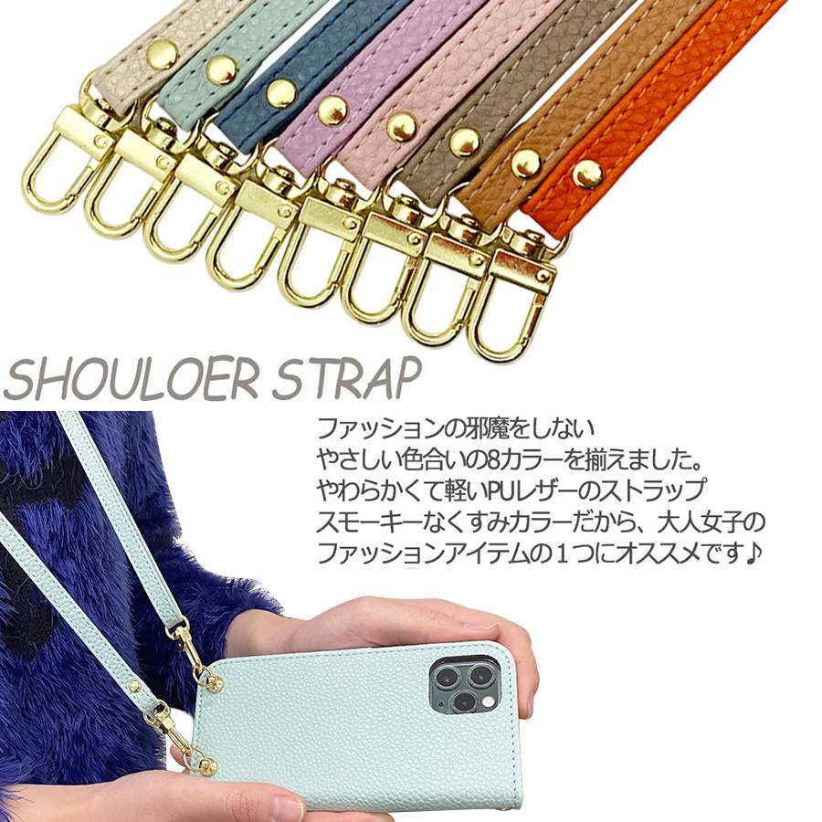 iPhone11 スマホショルダー(手帳バイオレット×ストラップ:アプリコット)カバー 手帳 くすみカラー