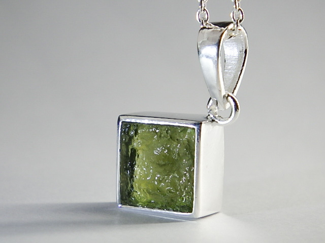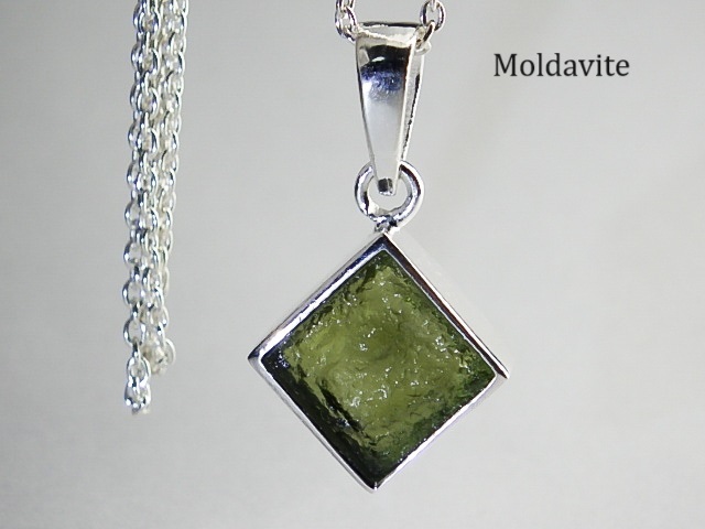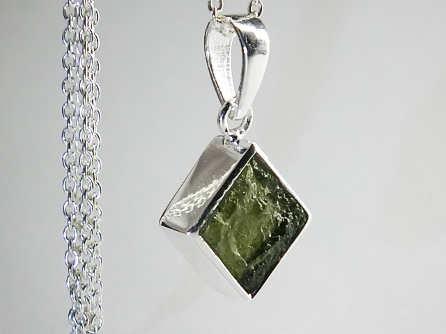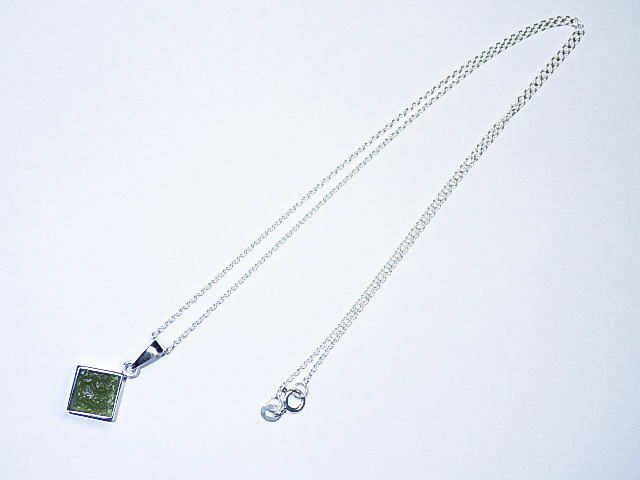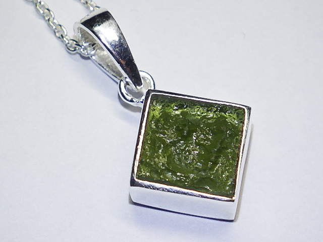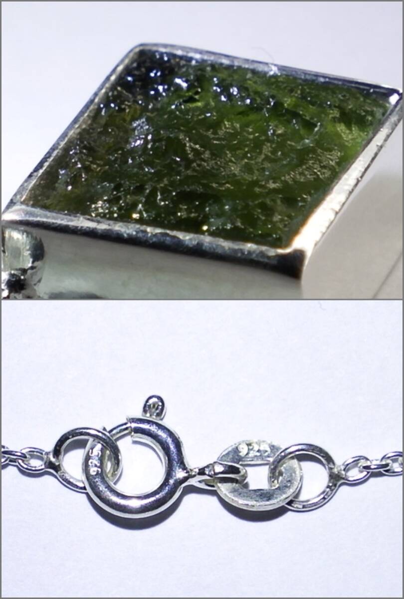 ★宇宙隕石モルダバイト★シルバーネックレスチェーン付き★ジュエリーペンダント★シルバー925★銀★メンズレディースサイズ★kamesan