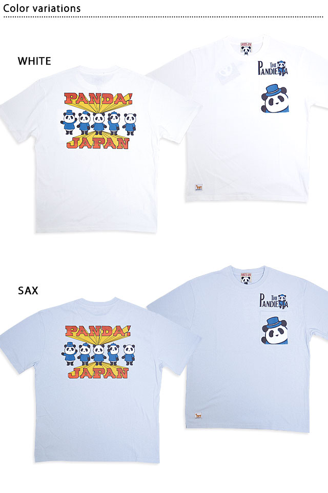 和柄ブランド【錦】の姉妹ブランドとして誕生した、お茶目なパンダをモチーフとした【PANDIESTA JAPAN】より「ハンドシグナル半袖Tシャツ(554352)」のご紹介です。 毎日着ることを考え、品質はもちろん価格にもこだわったグラフィックプリントTシャツが今年も登場しました。 今回はハンドシグナルを送るパンディエスタ達を背中にずらりと並べました。 ブルーで統一された服装もポイントになっています。 左胸のポケットにはパンディエスタをプリントしました。 シンプルになり過ぎてしまう夏のスタイリングにポケット付きTシャツは何かと便利なアイテム。 柔らかくて肌触りが気持ちよい天竺素材はシーンを選ばず、男女問わずオススメです。 | |||||||||||||||||||||||||
