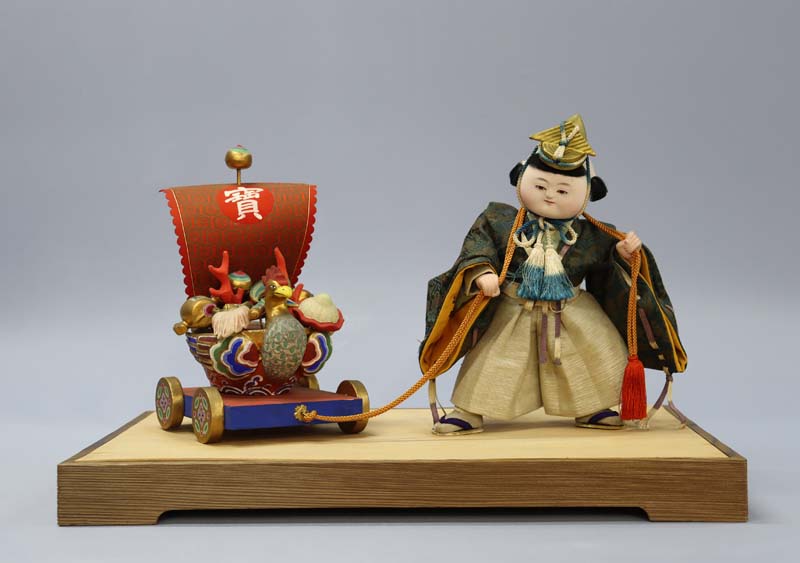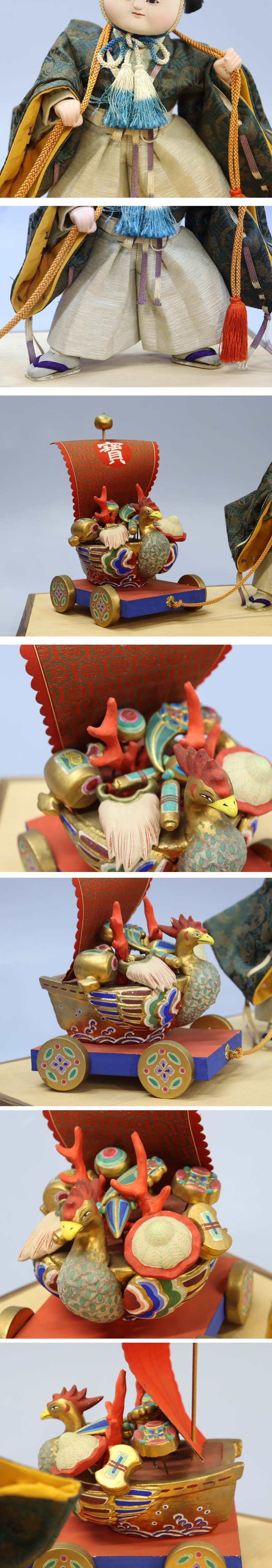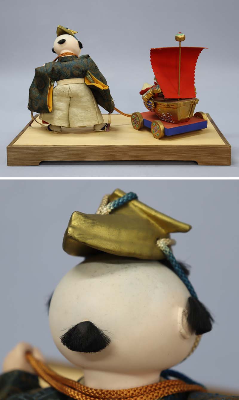 人形と宝車は台の桐板に竹ぐしで差して固定されています。