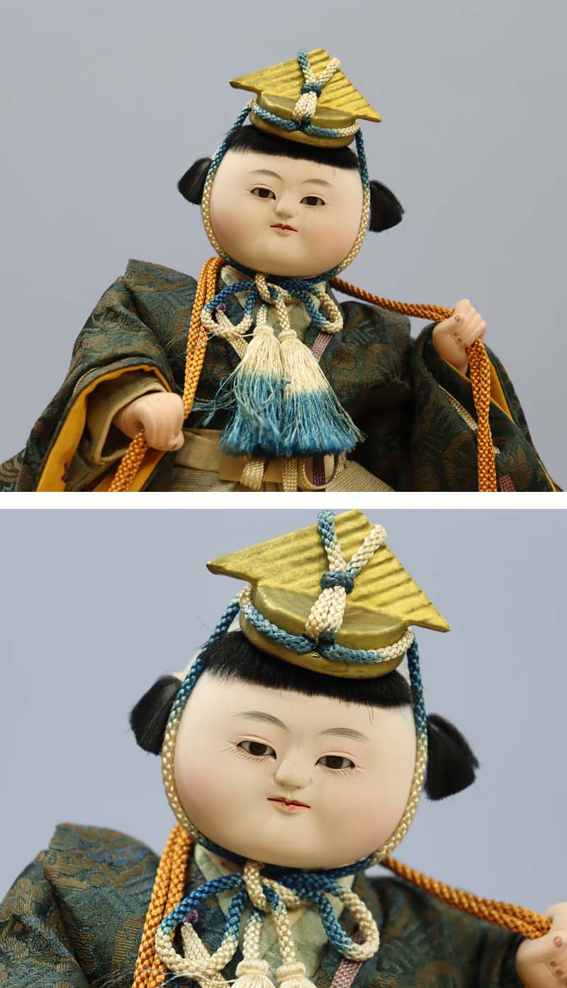 人形の右目の上まぶたに1ヵ所、右手の指先に1ヵ所極々細かい色ハゲがあります。