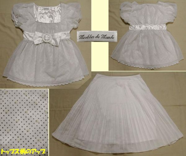 ■美品:白上下セット ドット柄トップス&プリーツスカートM DmM07