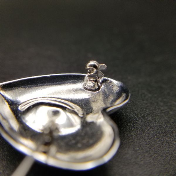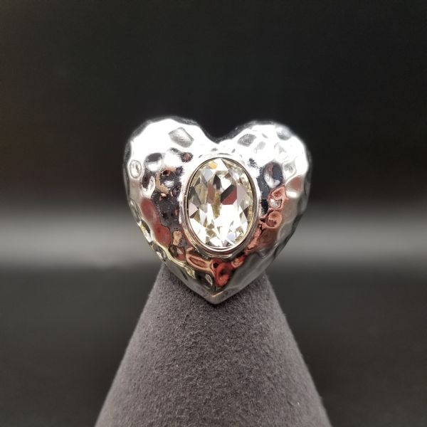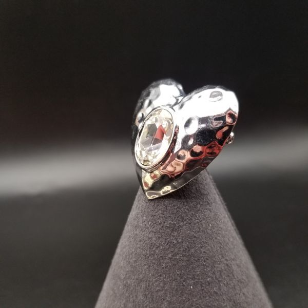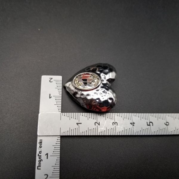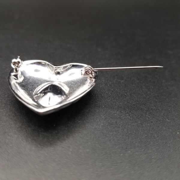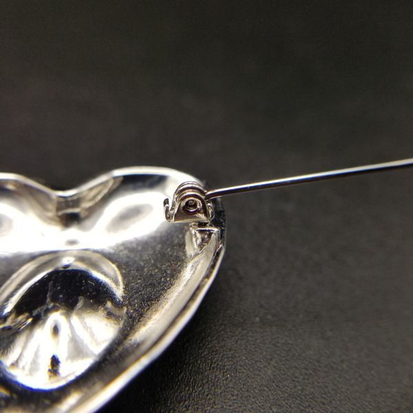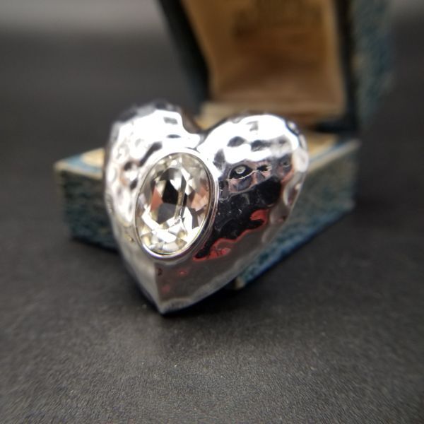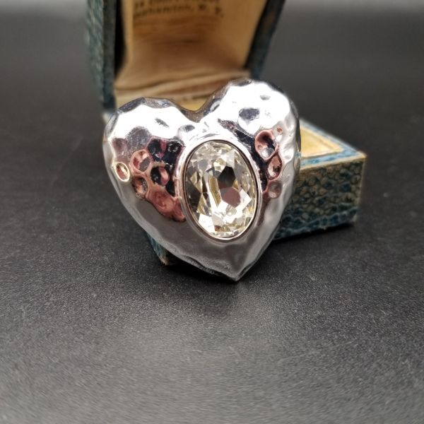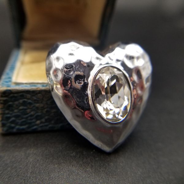 ぷっくりハート ハンマー打ち 槌目デザイン ヴィンテージ ブローチ レトロキュート コスチュームジュエリー 大ぶりラインストーン AJX①14