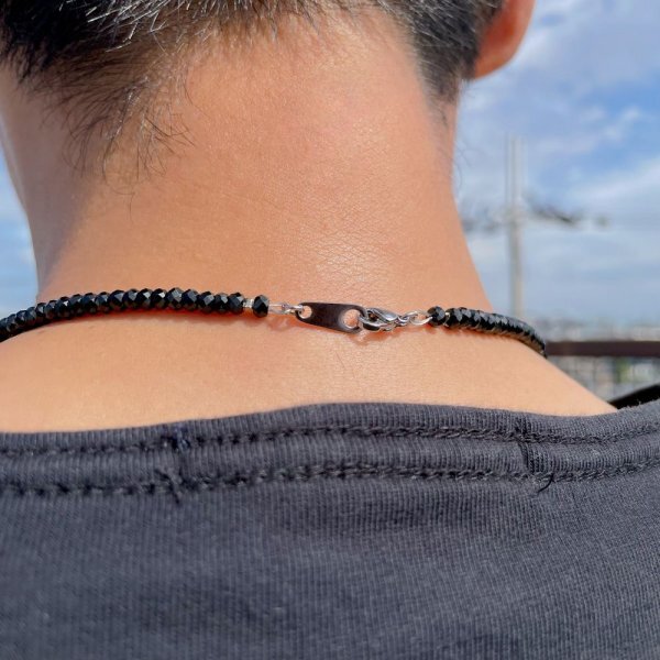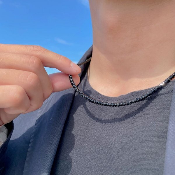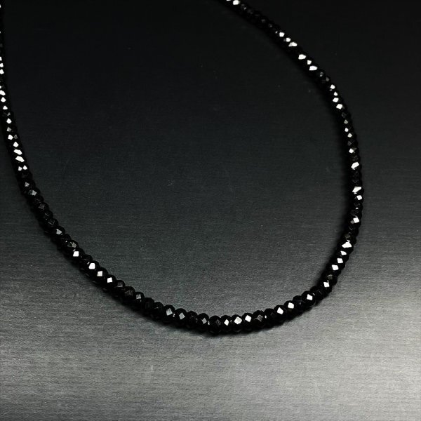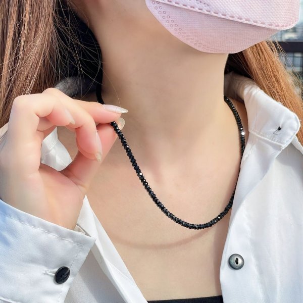 高級感バリバリの天然石アイテム♪漆黒の輝きを放つ ブラックスピネル ネックレス 4mm×2mm 有名人も愛用する 人気商品 ギフトに