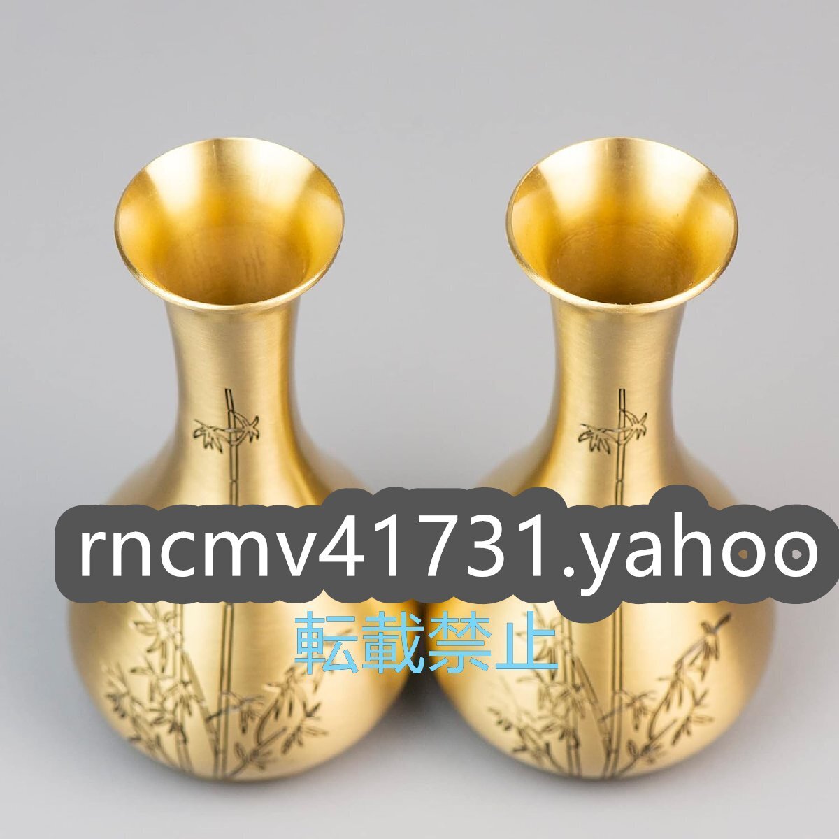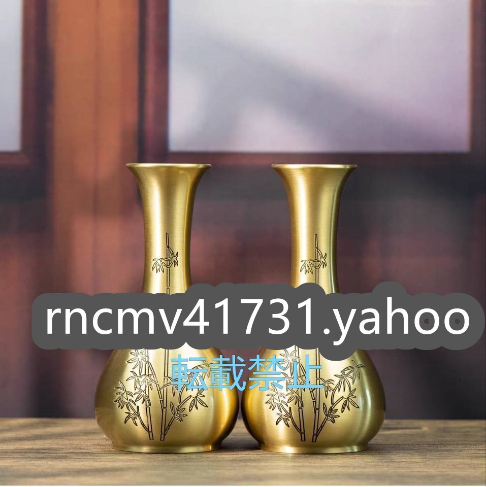 「81SHOP」仏具 花立 花瓶一対 真鍮製 小型 ミニ 花入れ 仏壇花立 お盆 花立て お供え 花つぼ 法要 仏具寺院用 花立て 花瓶 佛 高さ15.5CM