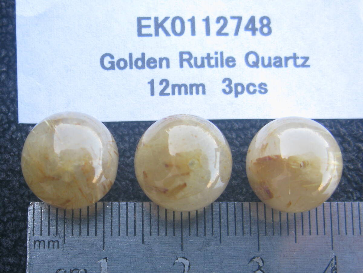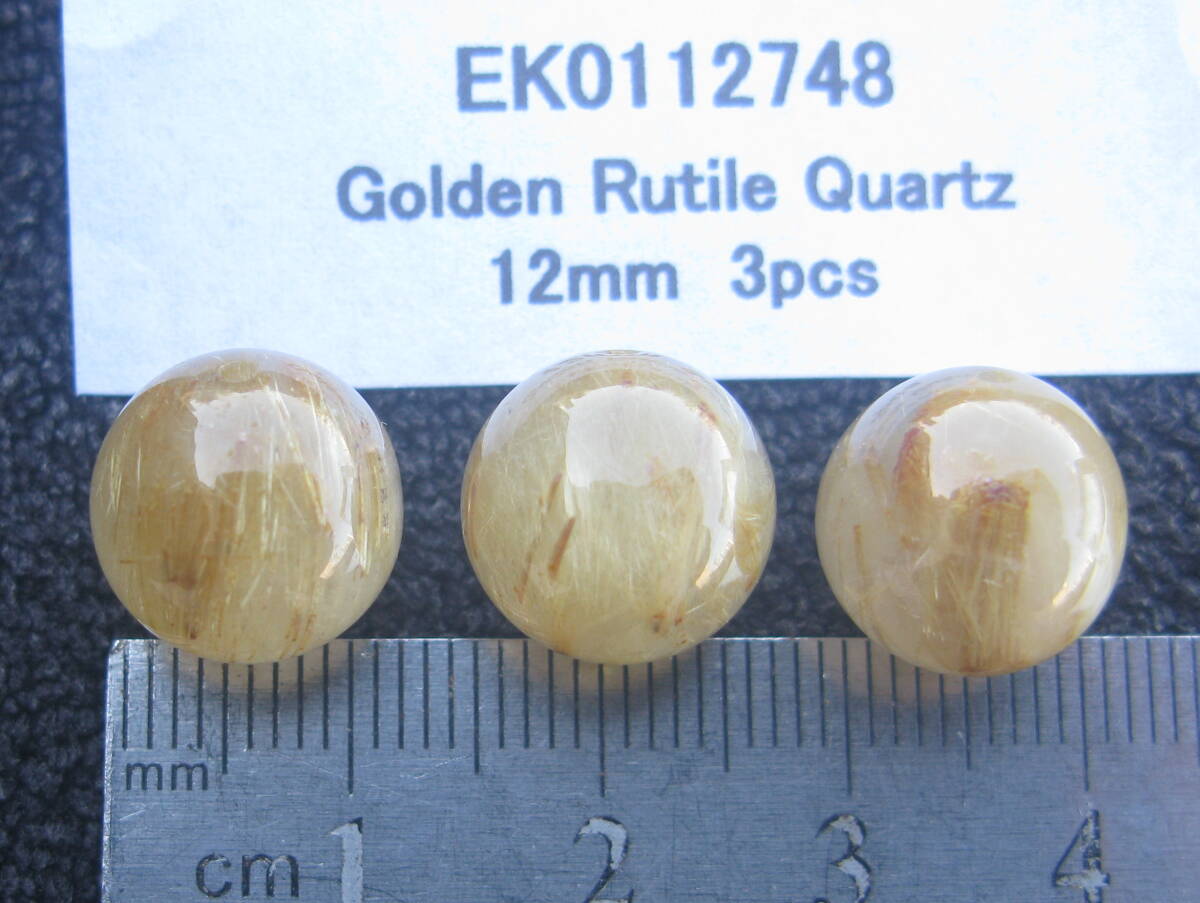 ◯送料無料★天然石&ゴールドルチルクォーツ▲丸玉!12mm!3粒!!!!!!