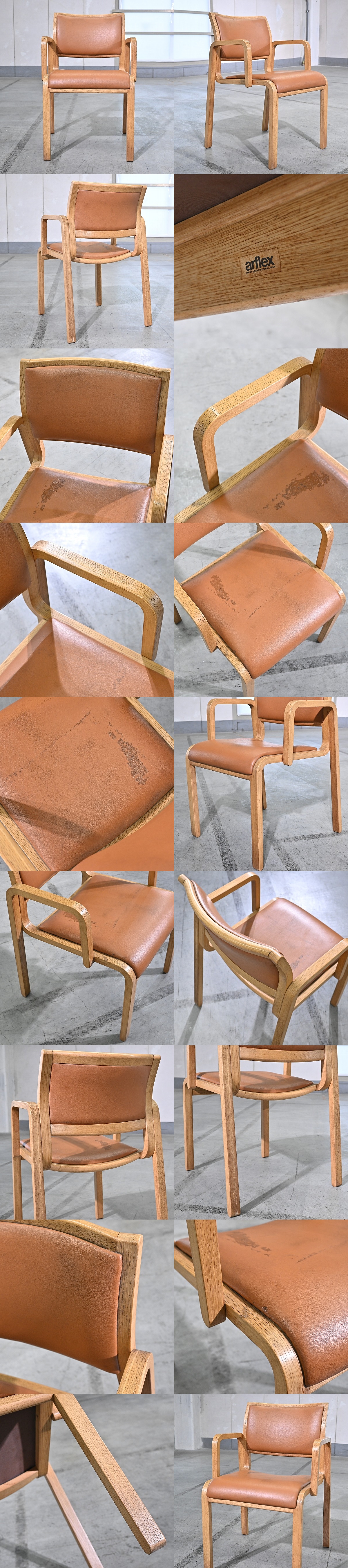 arflex「NU」11万 川上元美 オーク材 ダイニングチェアa アーム 椅子 アルフレックス イタリア 本革 高級家具 リビング