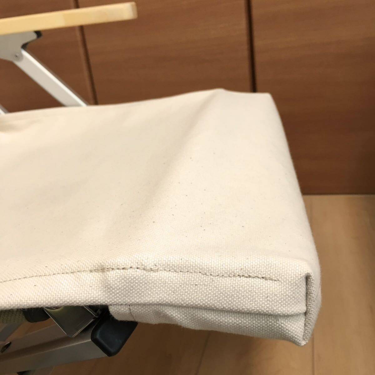 1番負荷のかかる、背もたれ上部から裏側の折り返し部分はカットしない方法(1枚生地)で加工しておりますので、強度があります