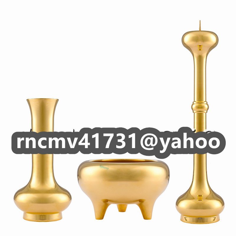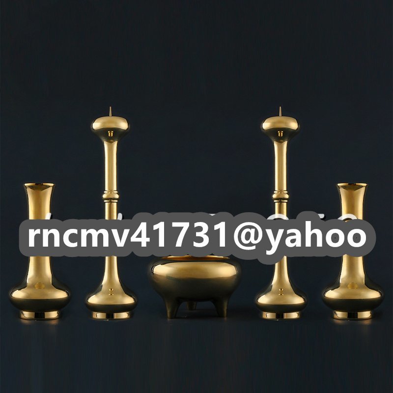 「密教法具 寺院用仏具」大型 寛通型 五具足 花立1対 火立1対 香炉1個 仏教工芸品 磨き仕上げ 真鍮製 9寸