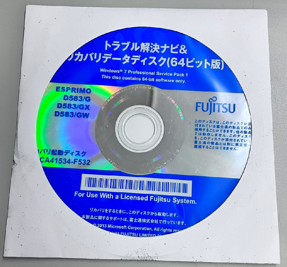 | 商品名 | FUJITSUトラブル解決ナビ&リカバリデータディスクWindows 7 Professional Service Pack1(64bit) D583/G,GX,GW |