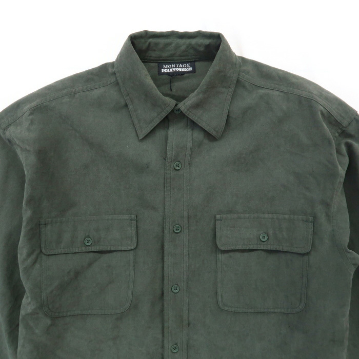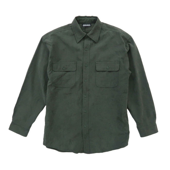 古着 フェイクスウェードシャツ 長袖 オリーブグリーン サイズ表記:- gd43523