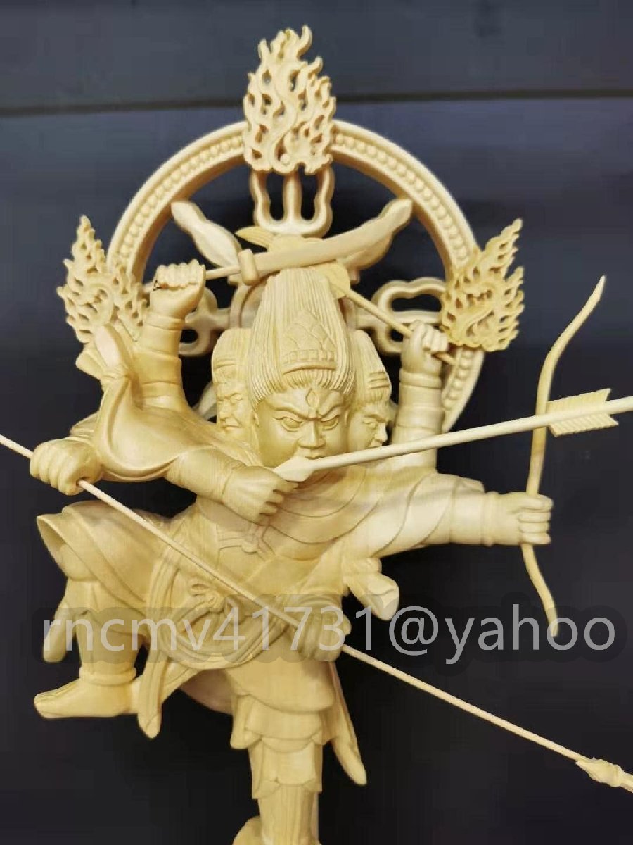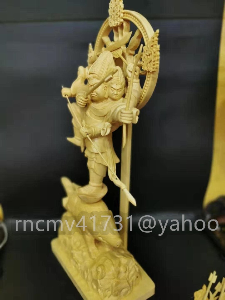 「81SHOP」摩利支天 仏像 立像 騎猪像 木彫り 仏像 守護神 総高48cm