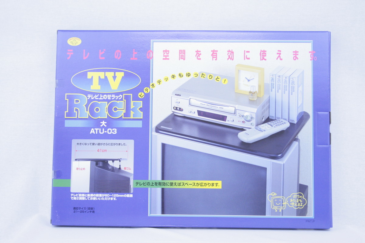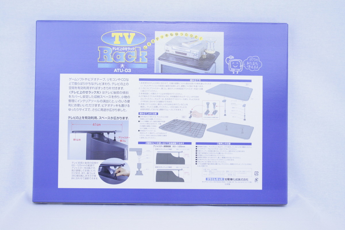 適応サイズ(目安):21~25インチ用※奥行きがない薄型テレビにはご使用いただけません。・材質:本体/ABS樹脂・付属品:調整ビス小(45mm)2本、調整ビス大(70mm)2本、六角ナット2コ、 本体固定アジャスター2コ、アジャスター2コ、スベリ止め3コ、・サイズ:(約)510×410×20mm・耐荷重:4kg