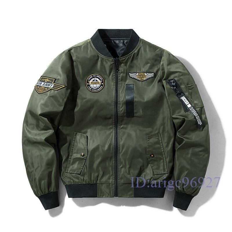 Y441☆新品フライトジャケット メンズ ライダースジャケット ミリタリージャケット MA-1 スタジアム ジャンパー ブルゾン オリーブ