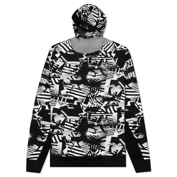 プーマ US:M ネーメン ニット プルオーバーフーディー 定価27500円 ホワイト ブラック 総柄 NEMEN コラボ パーカー L相当