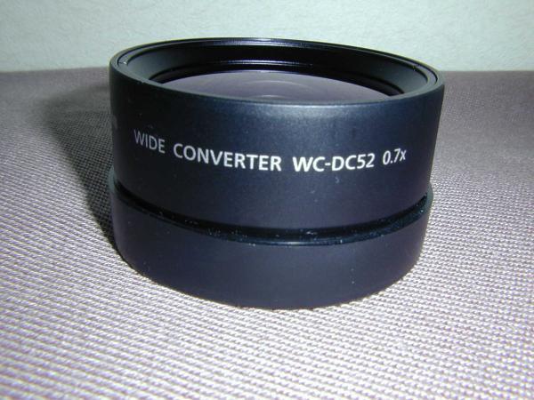 ●Canon WIDE CONVERTER WC-DC52。品物に小スレがあり、美品です。附属品は本体、蓋、キャップ、ケ-スです。