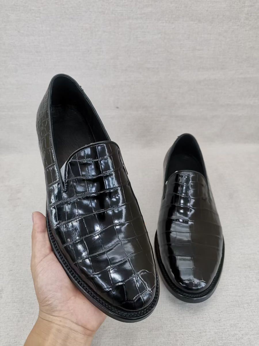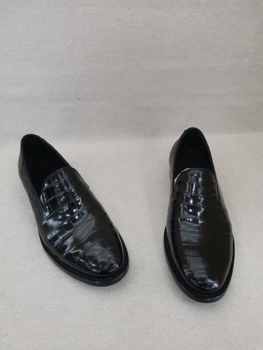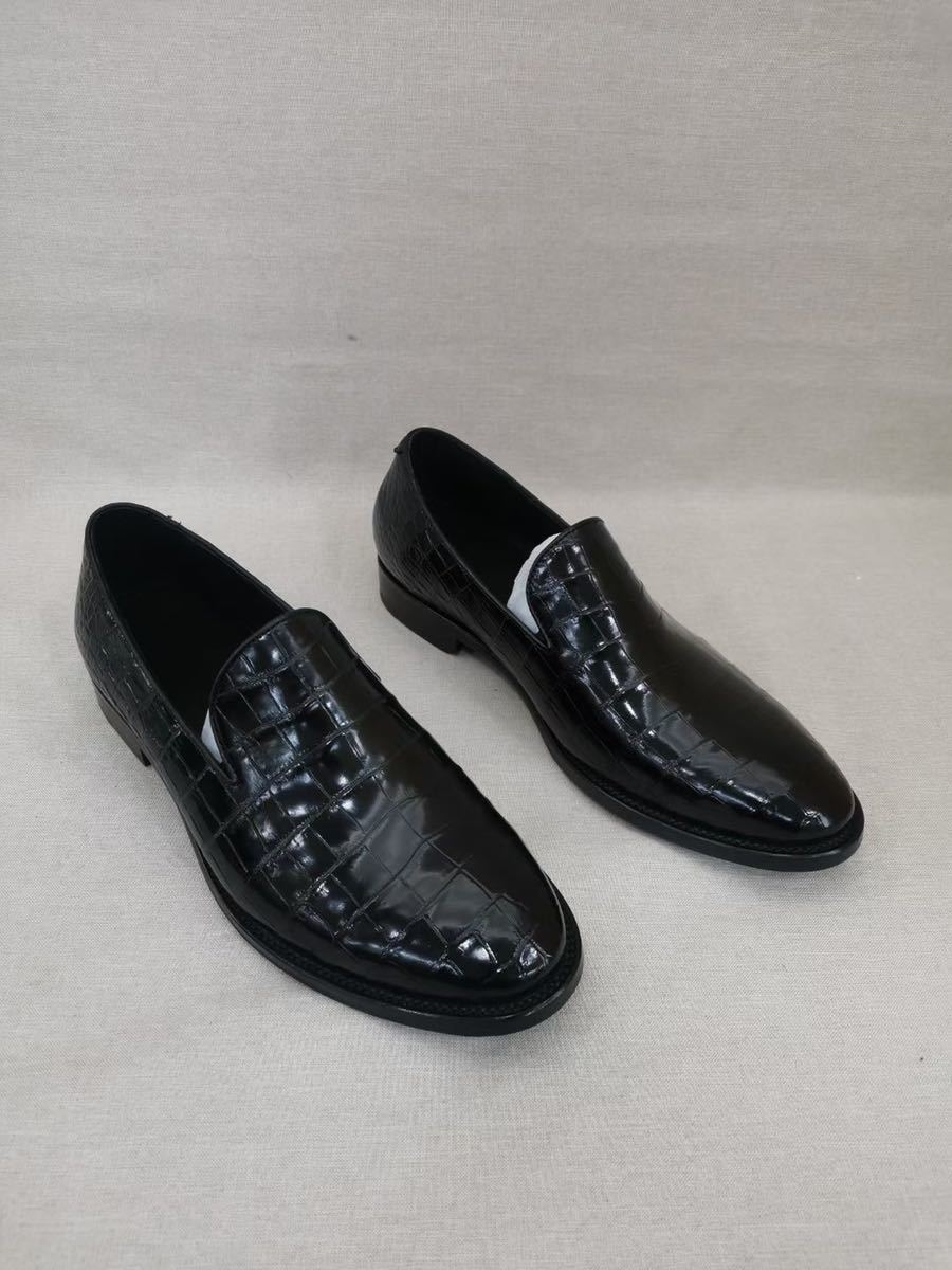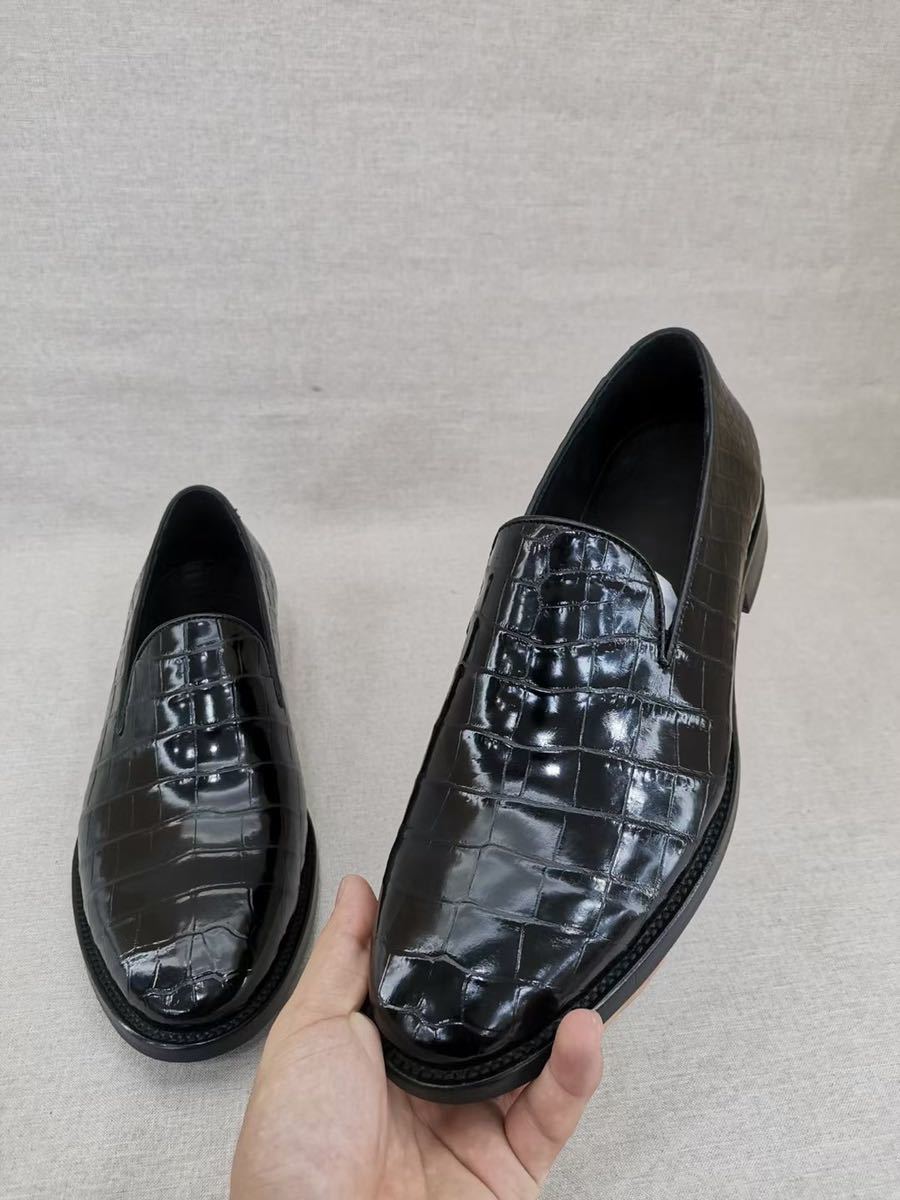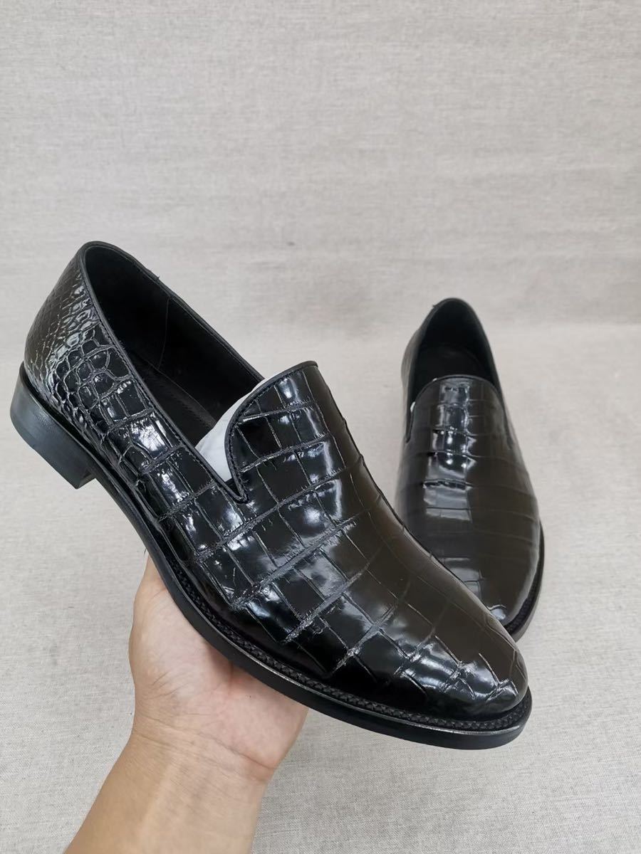 中でも腹部革の腑模様が正方形に近いが特徴で、その迫力ある腑模様が中央から左右対称に美しく並び、贅沢なシューズに仕上がっています。ワニ革シューズ、使いこむほどに味わい深い艶が増していき、