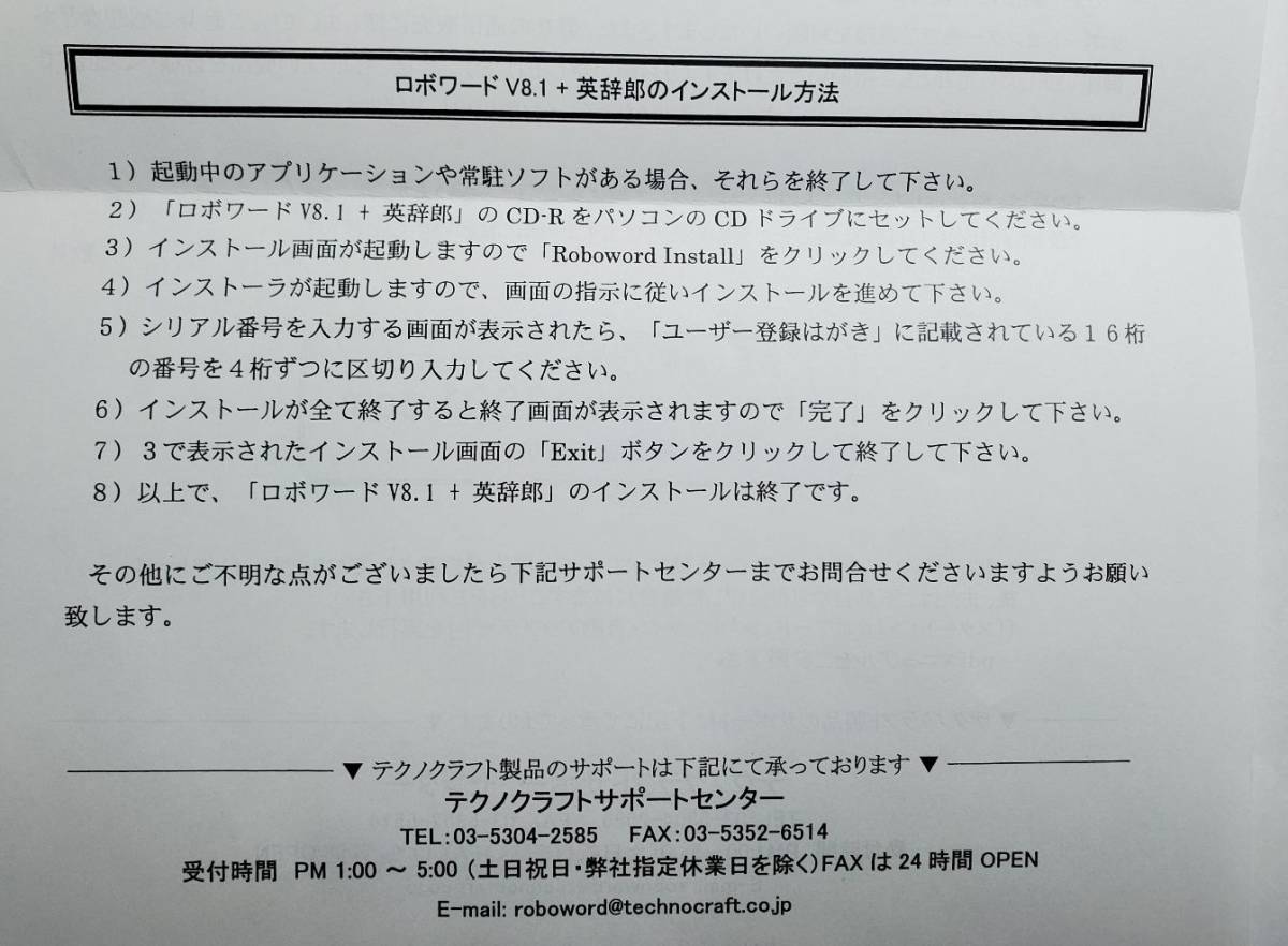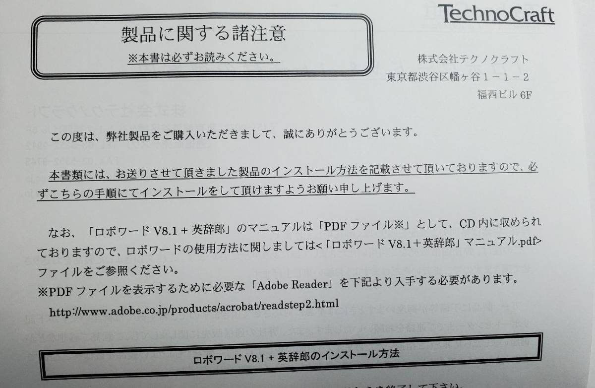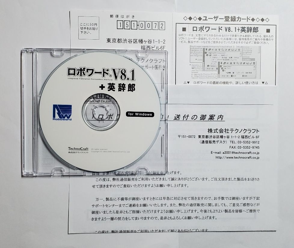 CD-ROM、ケース、説明書(インストール方法を記載)、シリアル番号の記載された用紙